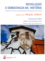 Palestra com a Historiadora Raquel Varela, que nos apresentará um dos temas mais recorrentes na História Global. Revolução e Democracia. Conheceremos uma parte do seu trabalho de investigação, e ouviremos a História de um Povo que, segundo a autora, construiu de forma coletiva, fraterna e solidária um dos momentos mais criativos da nossa história, propondo, solucionando e recriando alternativas audaciosas e desafiantes. Desafiante também é a História que nos apresenta, desafiando ela mesma as narrativas que teorizaram sobre a Revolução Portuguesa, propondo-nos uma outra interpretação diferente. Feliz. Recolocando homens e mulheres no centro da nossa História, evidenciando desse modo as dificuldades, mas também a criatividade e a resiliência de um povo, que com grande sentido de mudança, e ansioso por se expressar, se reuniu, se organizou, e se expressou como nunca antes.